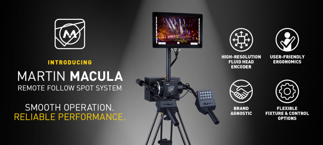 Martin Professional Introduces Macula Ennovations Knowledge Hub Latest by Elton - February 6, 2026February 6, 2026 Martin Professional has introduced Martin Macula, a remote follow spot system designed to transform standard moving lights into precision-controlled tracking fixtures for performers and/or objects on stage. The system addresses long-standing operational, safety and ergonomic challenges associated with conventional follow spot workflows, particularly in live performance, touring and sporting environments. Martin Macula replaces height-based follow spot operation with a ground-based control solution. From a single base station, operators can control one or multiple fixtures simultaneously with smooth, responsive movement, while maintaining a real-time visual reference that simulates being positioned directly at the fixture. This approach reduces operator fatigue, improves consistency and eliminates the safety risks associated with elevated platforms. At the core of the system is a high-resolution fluid head encoder, paired with ergonomic handles, and an integrated intuitive touchscreen interface. The base station allows operators to manage pan, tilt and zoom movement directly, while additional parameters including dimming, color and frost can also be controlled locally when required. Configuration and setup are deliberately streamlined, allowing efficient operation with minimal training while maintaining professional-grade performance standards. Movement control can be dynamically assigned, allowing movement or parameter control to transfer between console and base station on a cue-by-cue basis during a show. Fixtures fitted with cameras provide direct visual feedback to the operator, while additional fixtures without cameras can follow along in sync, enabling consistent multi-angle tracking of a performer or object. Presets and Fixture Banks can be created to adjust system behavior throughout a production, supporting flexible workflows across different show segments. Macula is said to work extremely well with the Martin MAC Ultra Performance, MAC Viper XIP and MAC Encore Two fixtures, which have been optimized for smooth and responsive movement. But since Macula is fully brand-agnostic, this allows any suitable moving head fixture to be used as a follow spot and fitted with a camera. Network infrastructure is intentionally simplified, with camera feeds and control data running over a single network and no dedicated video cabling required between fixtures and the base station. The system also supports PosiStageNet output, allowing XYZ position data for performers or objects to be shared with third-party applications, opening integration opportunities for advanced tracking and automation workflows. The company confirms that Martin Macula is intended for use across theaters, concerts/touring, broadcast, and sporting venues, where accurate tracking, reliability and operator safety are critical. By shifting follow spot operation to a remote, configurable and brand-agnostic platform, Martin Macula offers lighting teams a practical alternative to traditional follow spot installations while maintaining professional-grade control and performance standards. Share on Facebook Share Share on TwitterTweet Share on Pinterest Share Share on LinkedIn Share Share on Digg Share